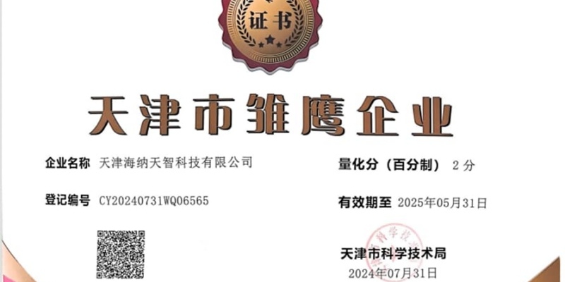 海納天智榮獲《天津市雛鷹企業(yè)》證書